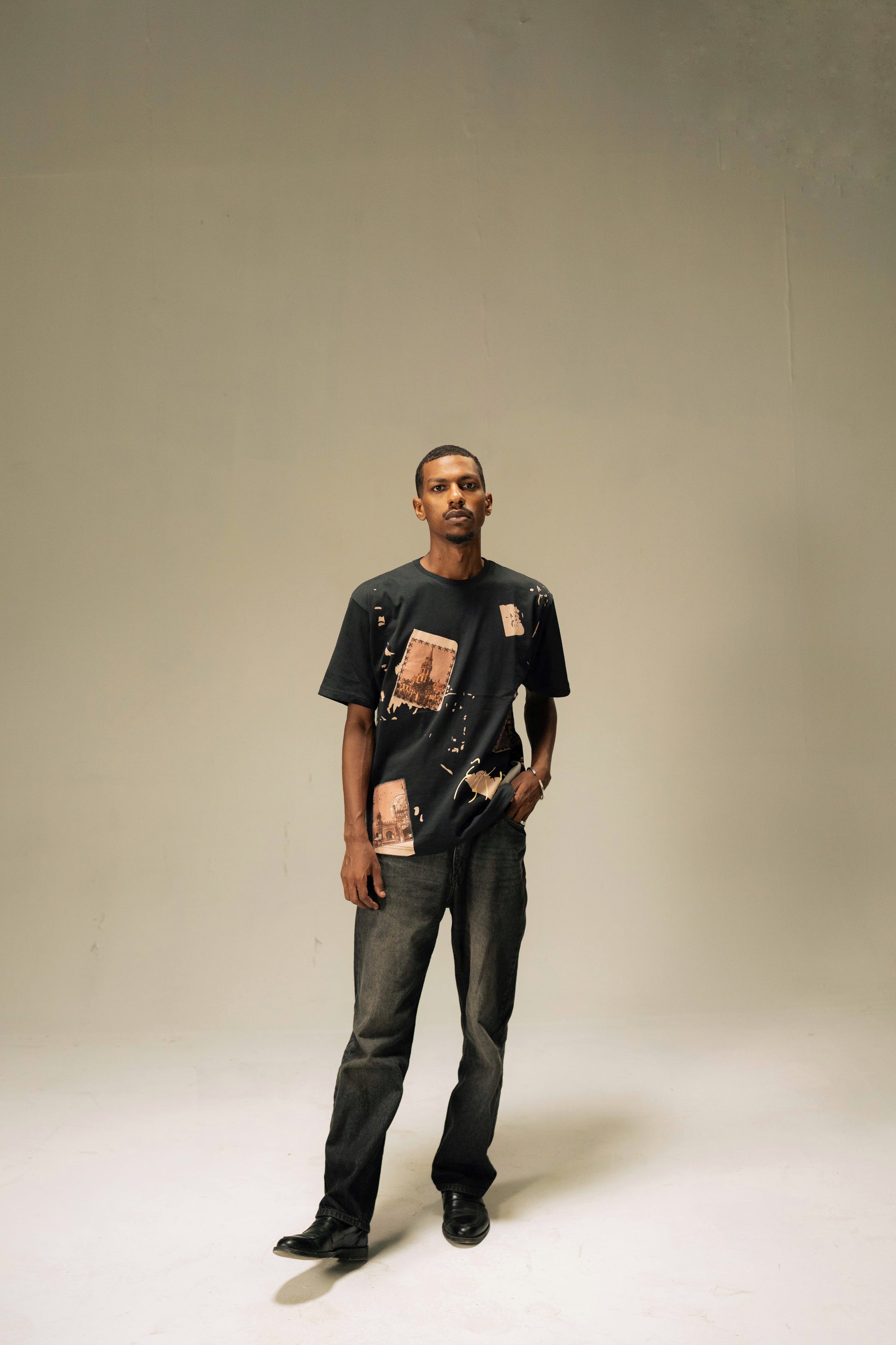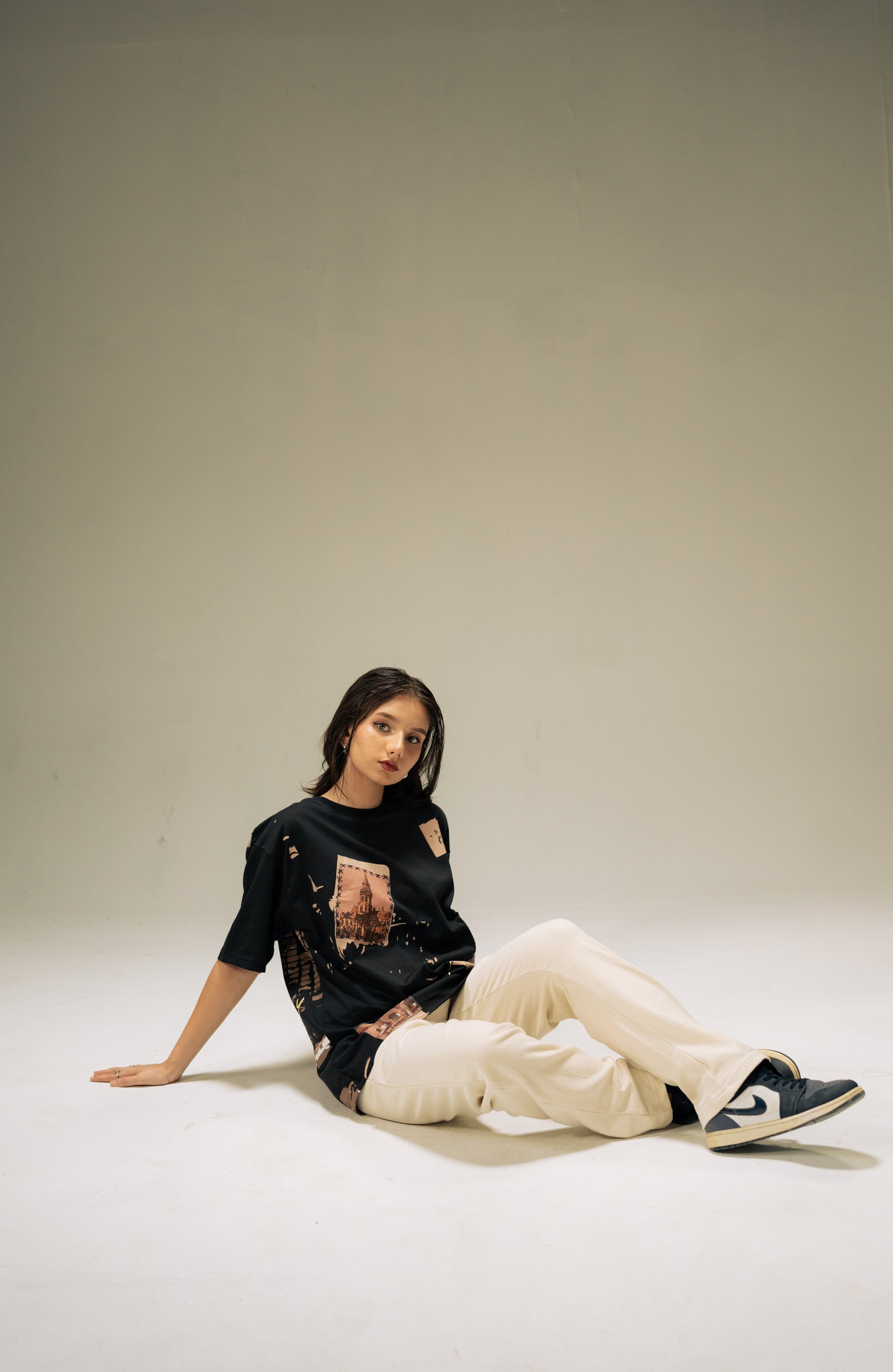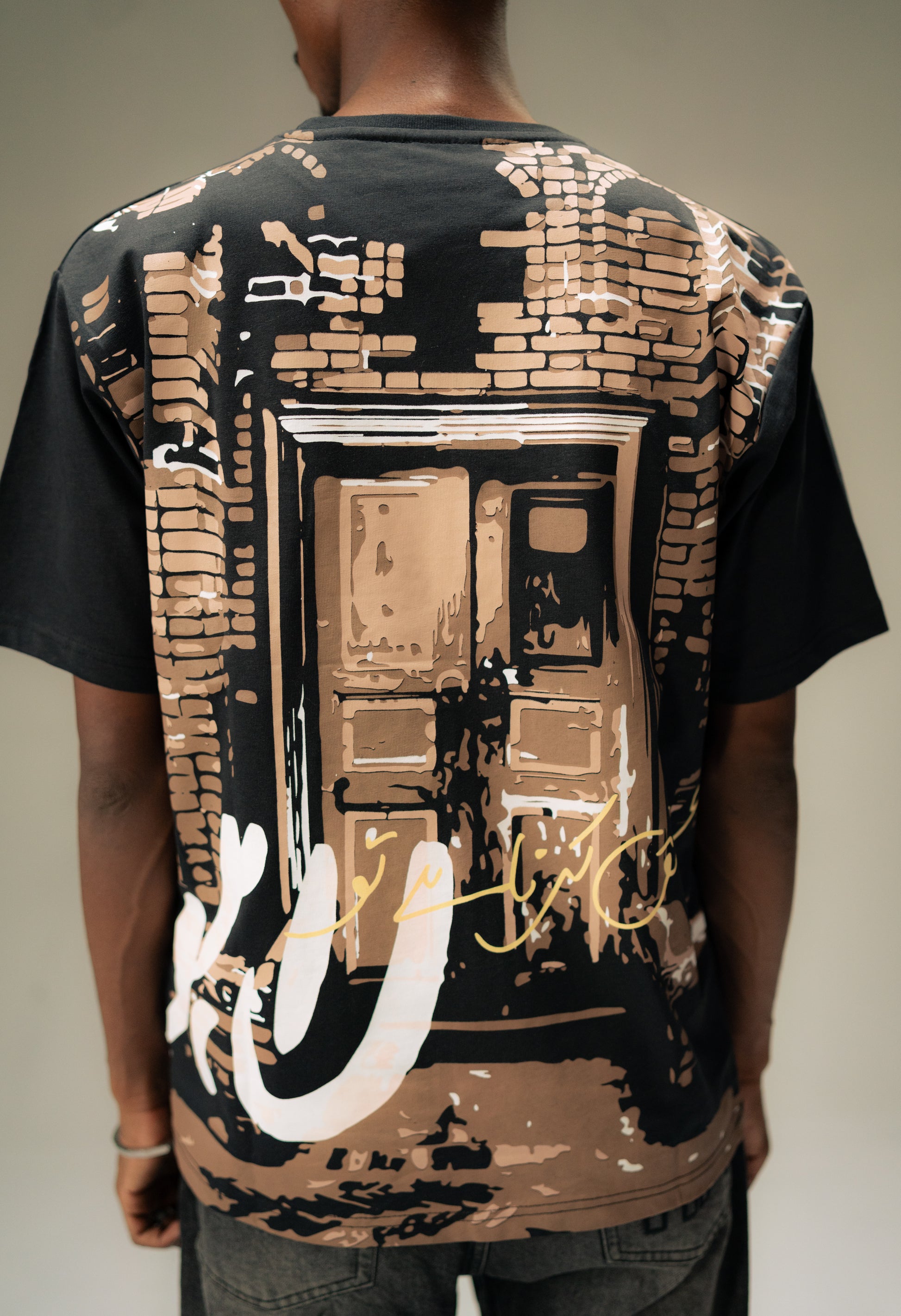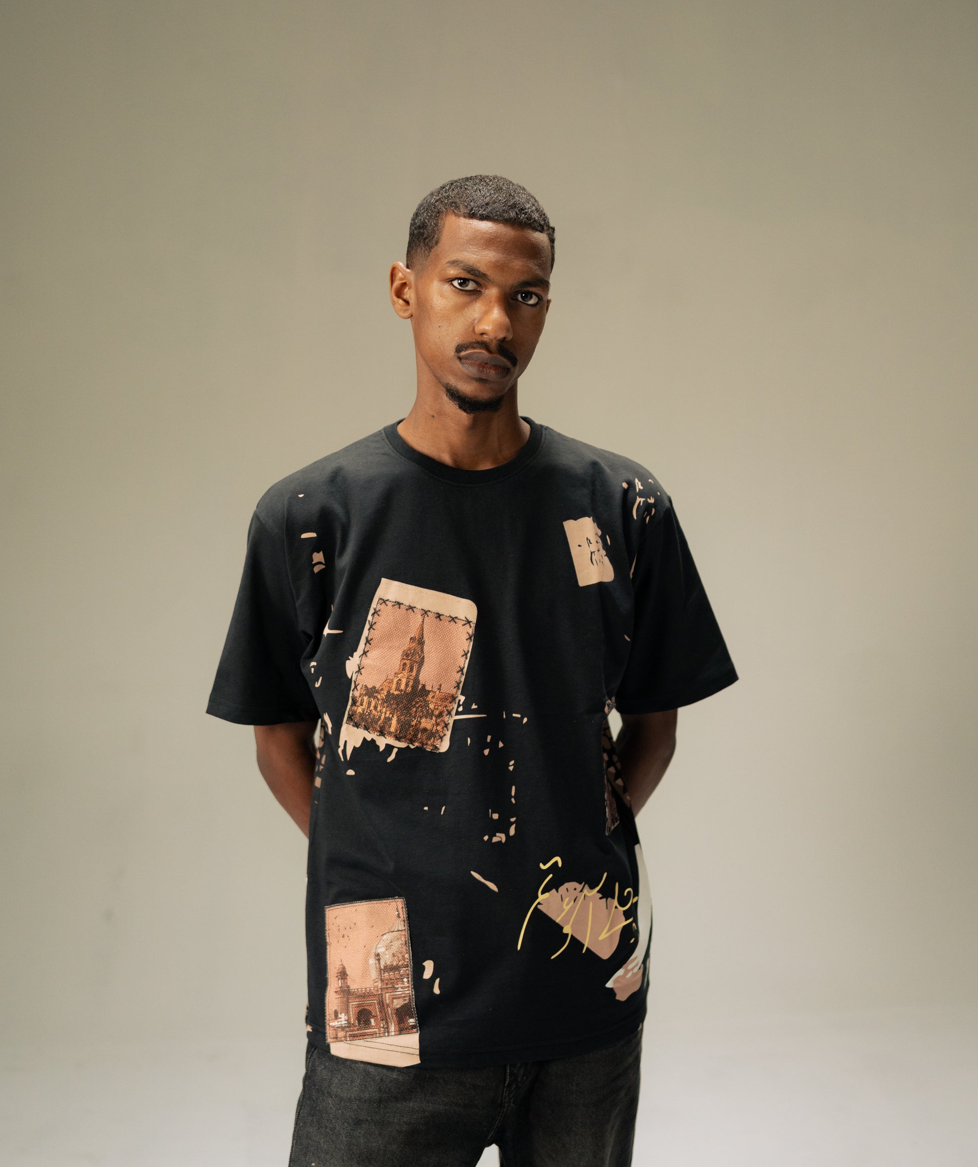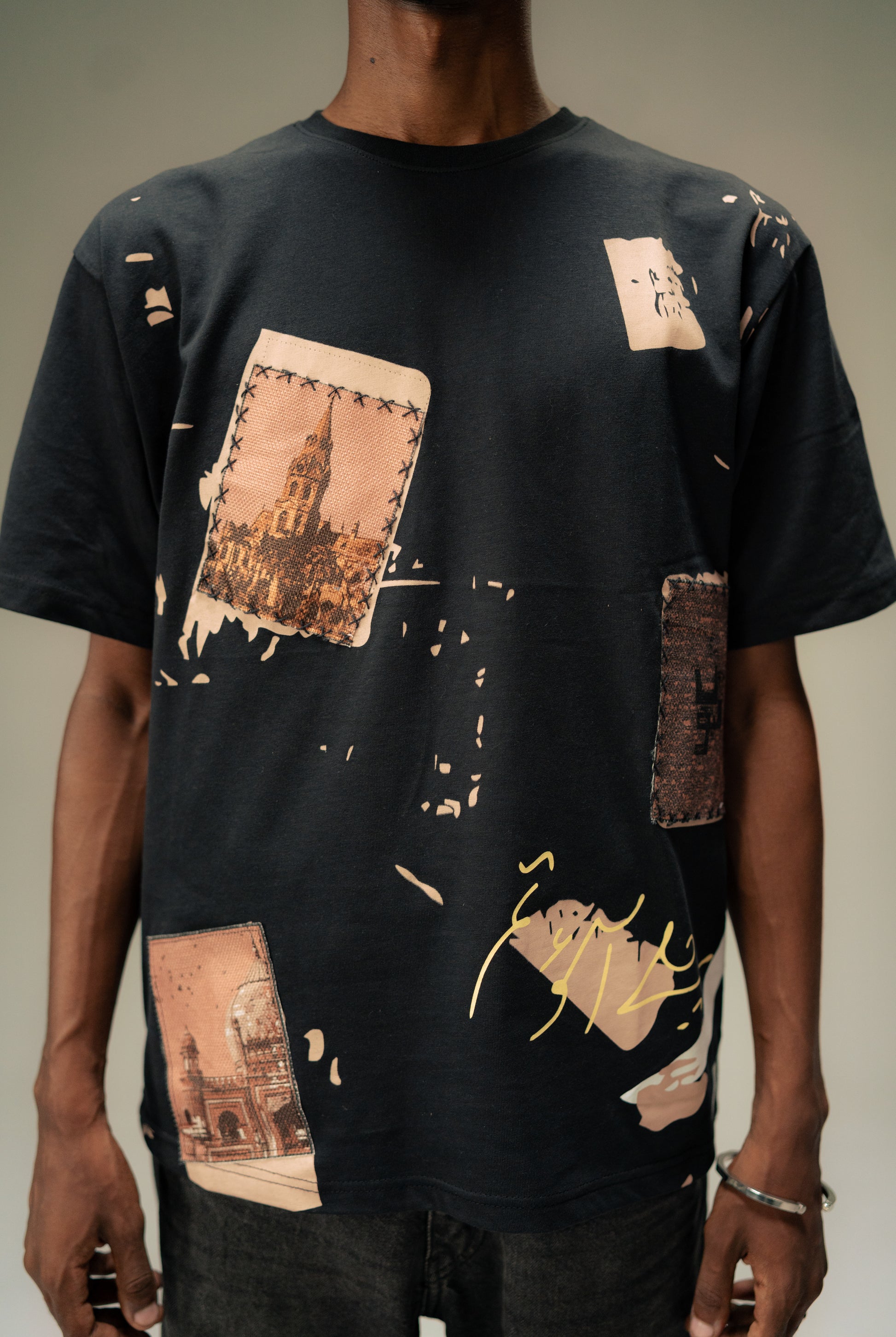 The design showcases vintage imagery and architectural elements that echo memories of old cityscapes and forgotten corners. Each detail — from sepia-toned prints to subtle textures — tells a story of place, identity, and nostalgia. It’s not just a shirt; it’s a visual time capsule.