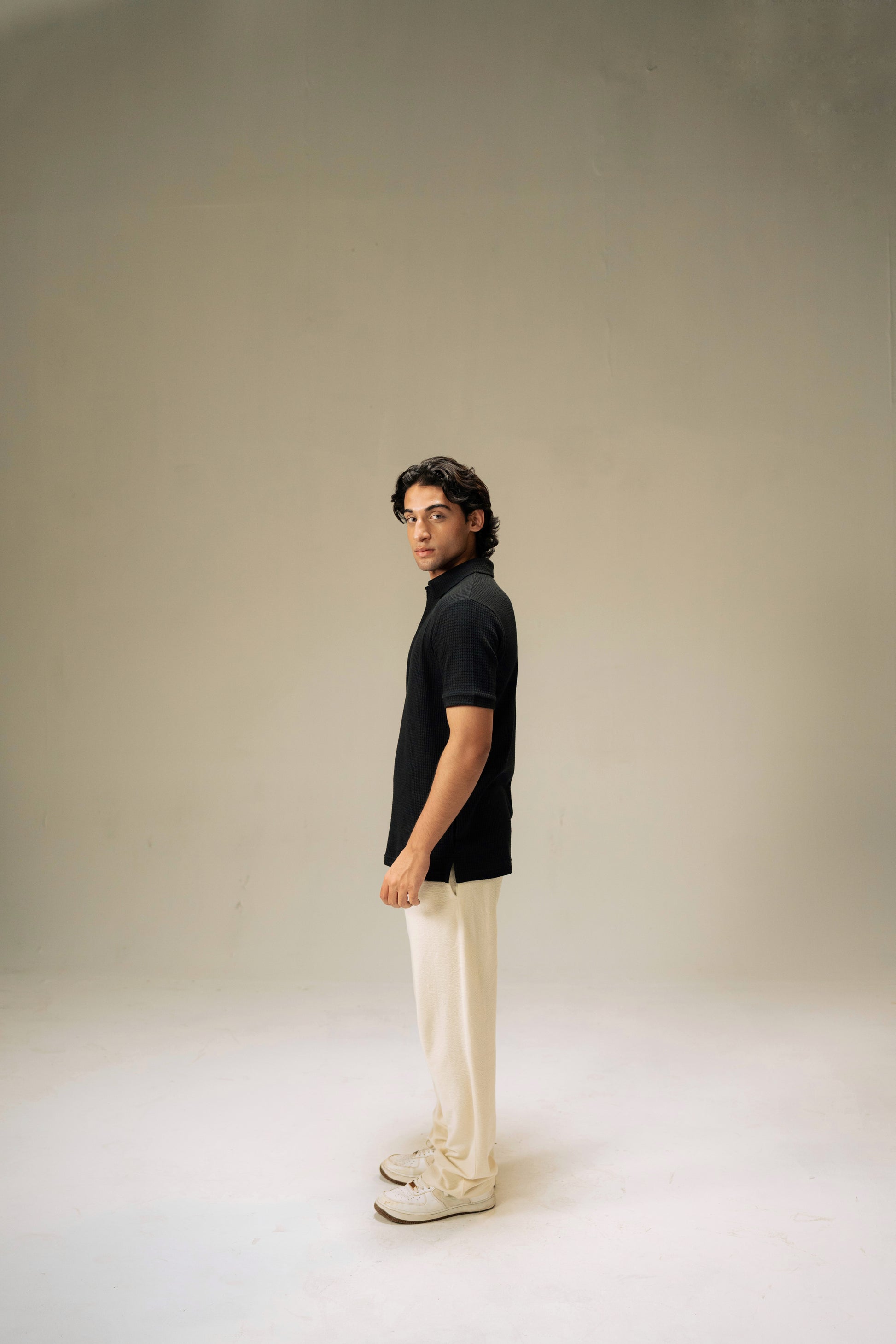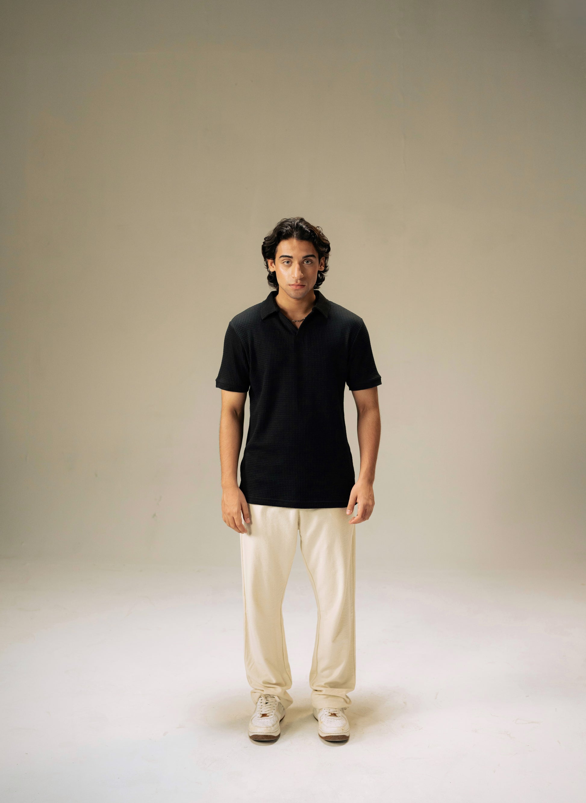 Effortless sophistication in classic black. This knitted polo features a subtle rib texture and mid-weight construction, offering a clean silhouette with just the right structure. Ideal for both smart evenings and minimal daytime looks, it’s your wardrobe’s most versatile essential.