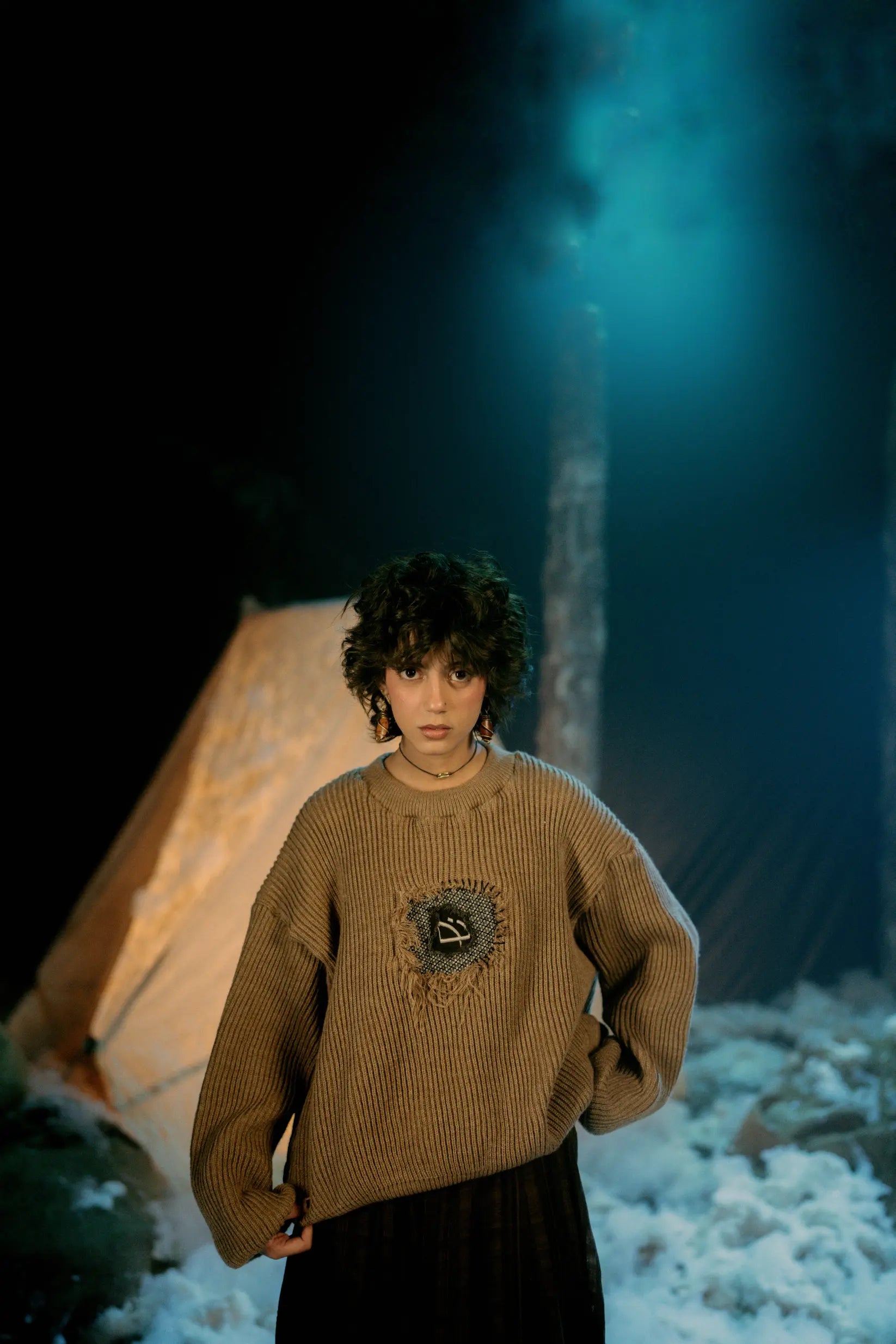 Elevate your winter wardrobe with the last ornament - a stunning brown sweater that's the perfect finishing touch.