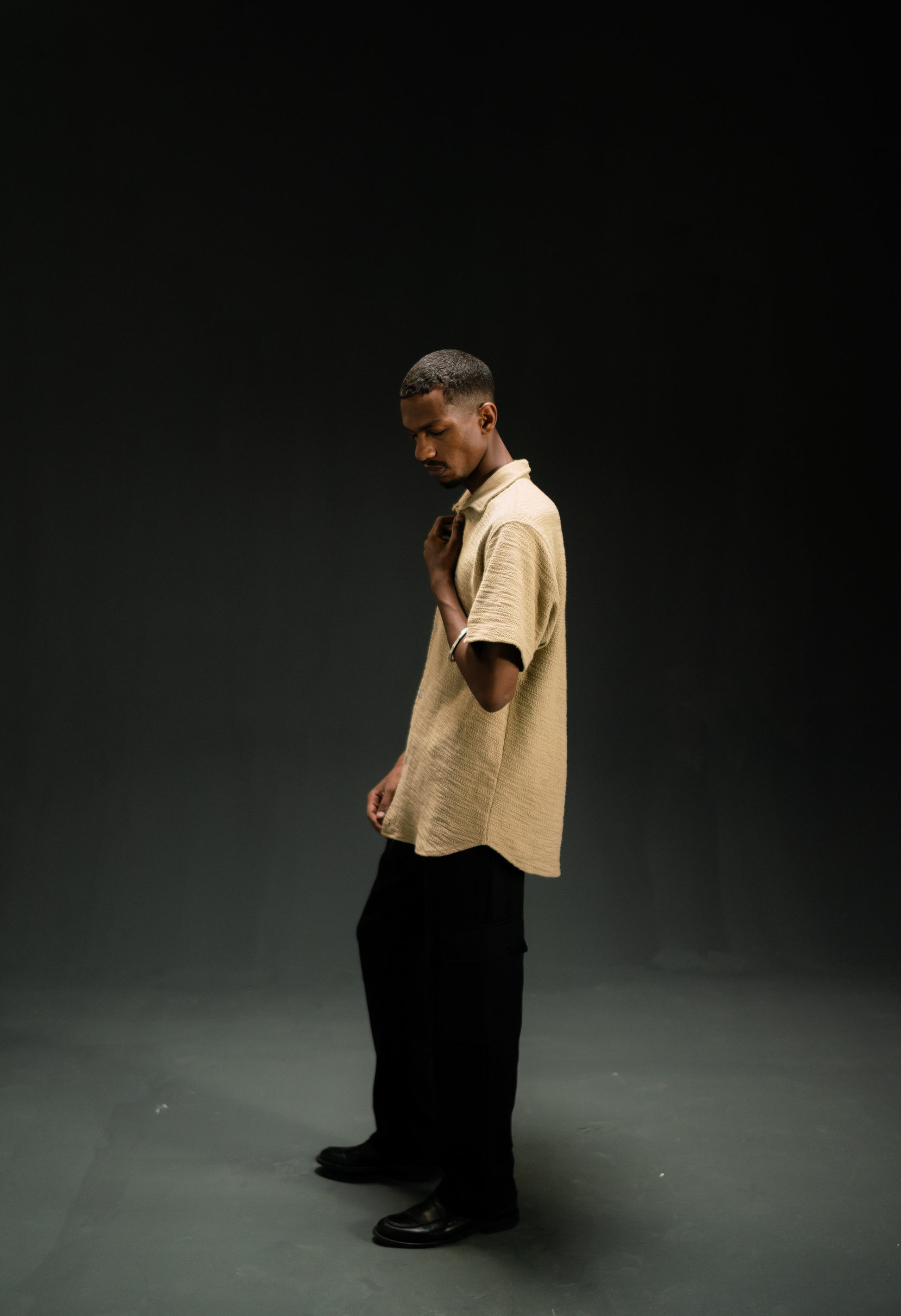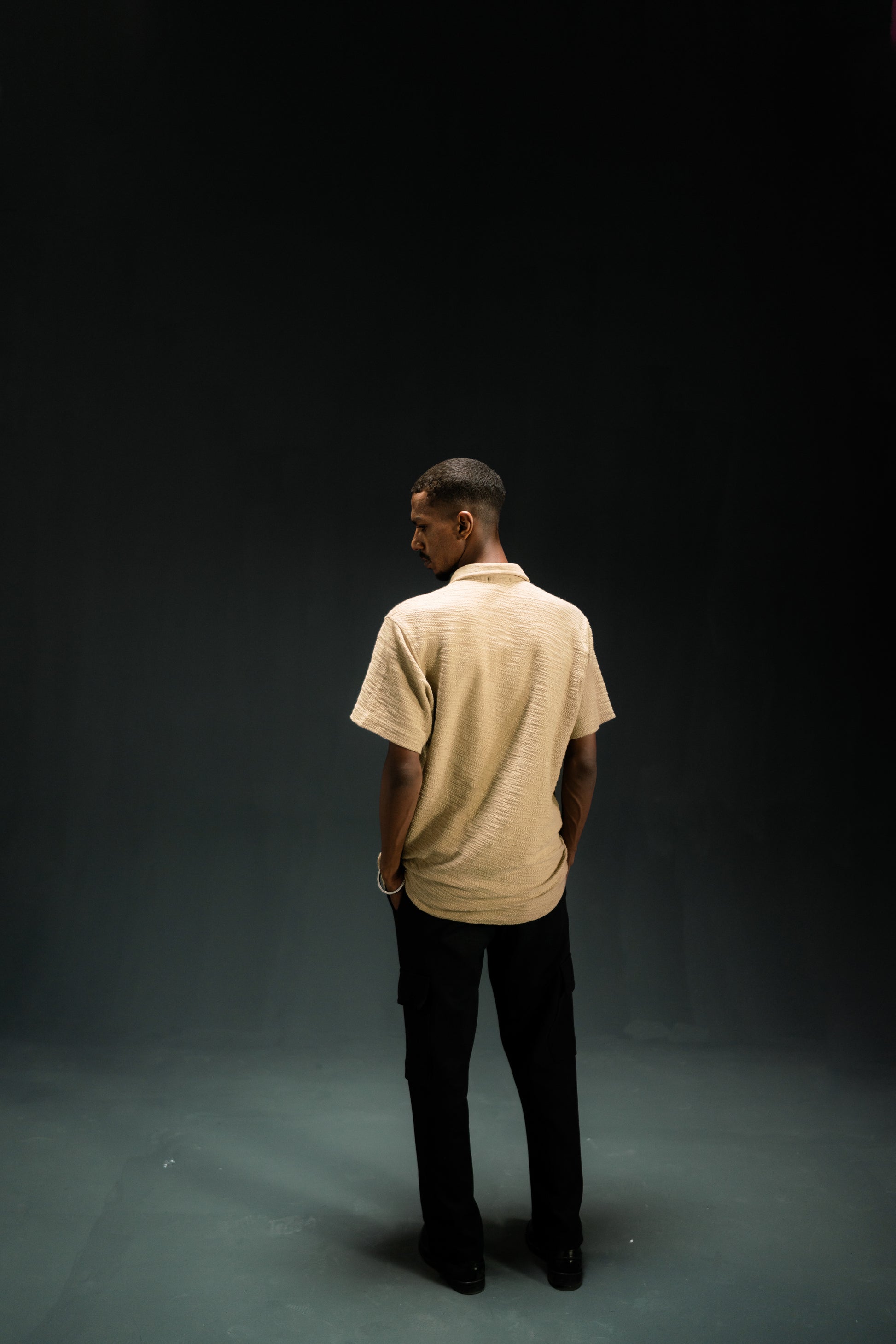 Soft in tone but rich in texture, this beige ribbed button-down is the most understated piece of the collection — yet speaks volumes through its fabric and finish. The warm, neutral base makes it a versatile classic, while the premium rib and structured weight make it feel distinct and durable. Designed for all genders, it captures the essence of effortless elegance and comfort.